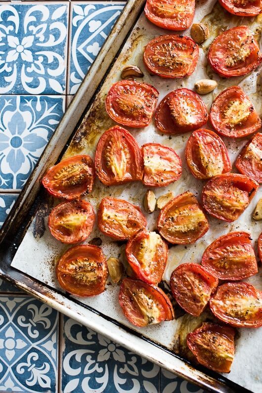 If you did not know, Pauline, or Good Gracious wrote a book of recipes many years ago. Over the next several months we will share those recipes, chapter by chapter. Today, we’ll dive right in to Chapter 1: Drunken Tomatoes with Chili Salt and Zatar Spice!