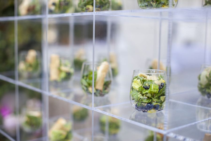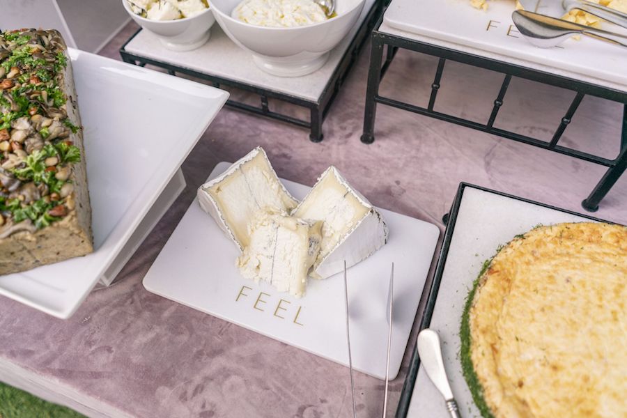 Wanting to complement FEEL’s vibe, we created a fabulous menu with fresh, local ingredients, such as, our California Market Experience, which includes, fresh bread, local cheeses and meats, as well as vine ripe tomatoes and olives! Our Summer Salad wall made an appearance with salads that consisted of arugula, spinach, avocado, quinoa, onions and blueberries. Fresh and delicious! As everyone loves our crostini’s, we made sure to include a selection with toppings such as avocado, tomatoes, chicken and artichoke. Finally, we served an orecchiette spinach lentils box with orecchiette pasta, yellow lentils, baby spinach with tomatoes and basil served in to go box with fork served with organic chicken parmesan weaved on a wooden skewer.