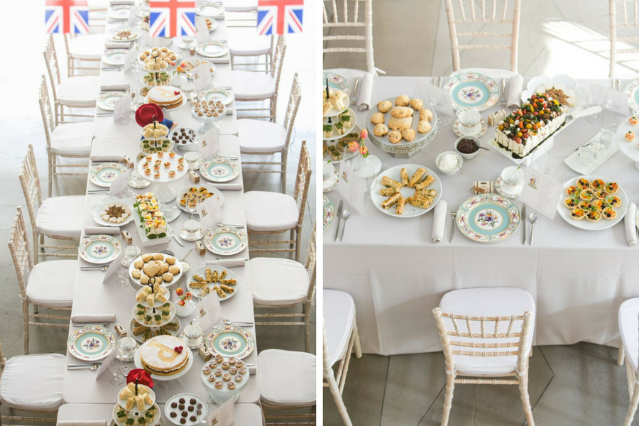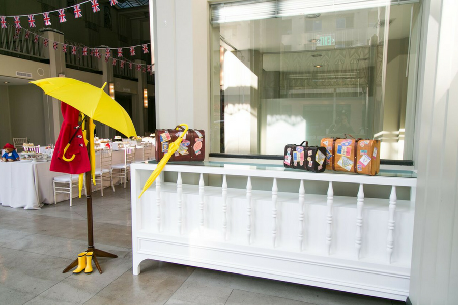 “The pristine white Deco Wilshire venue was the perfect space for this British-inspired brunch, as guests gathered around a glorious spread provided by Good Gracious Events. Mini Union Jack flags were strung overhead while friends and family sipped tea and nibbled on scones and marmalade goodies in true Paddington fashion. Gorgeous linens by BBJ Linen were draped over the long table, while elegant modern Rrivre Works furniture seated guests with comfort and class. The whole theme was tied together by Premiere Party Rentals tableware and adorable Paddington details. Larger-than-life blocks and bears decked in raincoats in each corner kept the classy brunch whimsical and fun, while the signature Paddington “P” kept the theme consistent throughout the party!” – Via Catch My Party