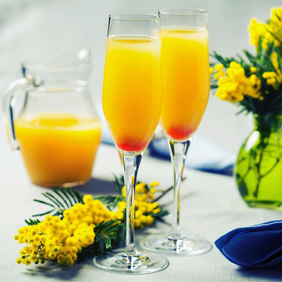 Champagne, Orange Juice, Sparkling Water, Almond Milk, and Cheese