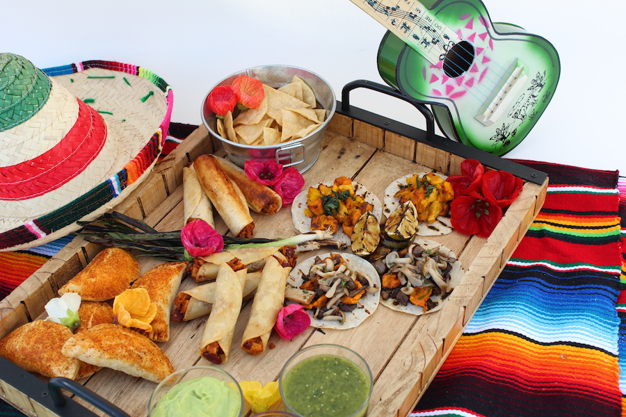 Mexican platter with taco, taquitos, Flautas, and empanadas